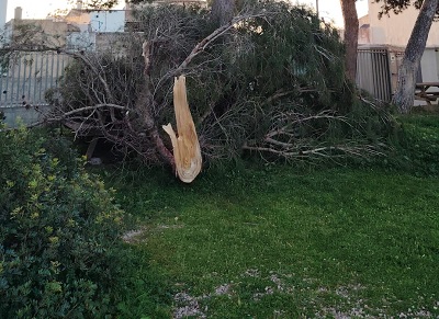 Las rachas de viento también han provocado caídas de árboles y ramas en diferentes puntos del municipio, como en la calle de Joan Lliteres y en la vía Mayórica, atendidos por el servicio municipal de jardinería. Asimismo, los servicios municipales jardinería han tenido que cortar el ramaje de un pino del recinto del polideportivo de s'Illot para evitar riesgos.