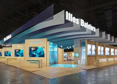 Se trata del mismo estand que se inauguró el año pasado, un diseño que está inspirado en el agua y la cura por nuestros recursos naturales. Con una firme apuesta por la sostenibilidad, tanto en sus materiales como en todo el proceso constructivo, el estand busca, además, ser un espacio funcional y útil para toda la actividad ferial que en él se desarrolla. Para lo cual, se han distribuido diferentes espacios propios para cada una de las islas, Mallorca, Menorca, Ibiza y Formentera, así como un gran ágora central que sirve de punto de encuentro.
